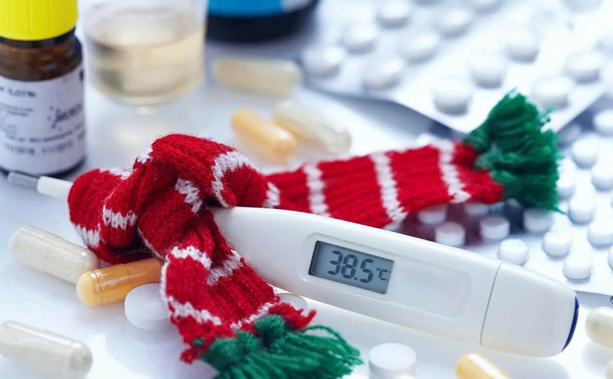 Важно отличать ОРВИ от гриппа: при гриппе симптомы появляются резко, температура быстро поднимается выше 39 °С, выражены сильная слабость и боли в мышцах.